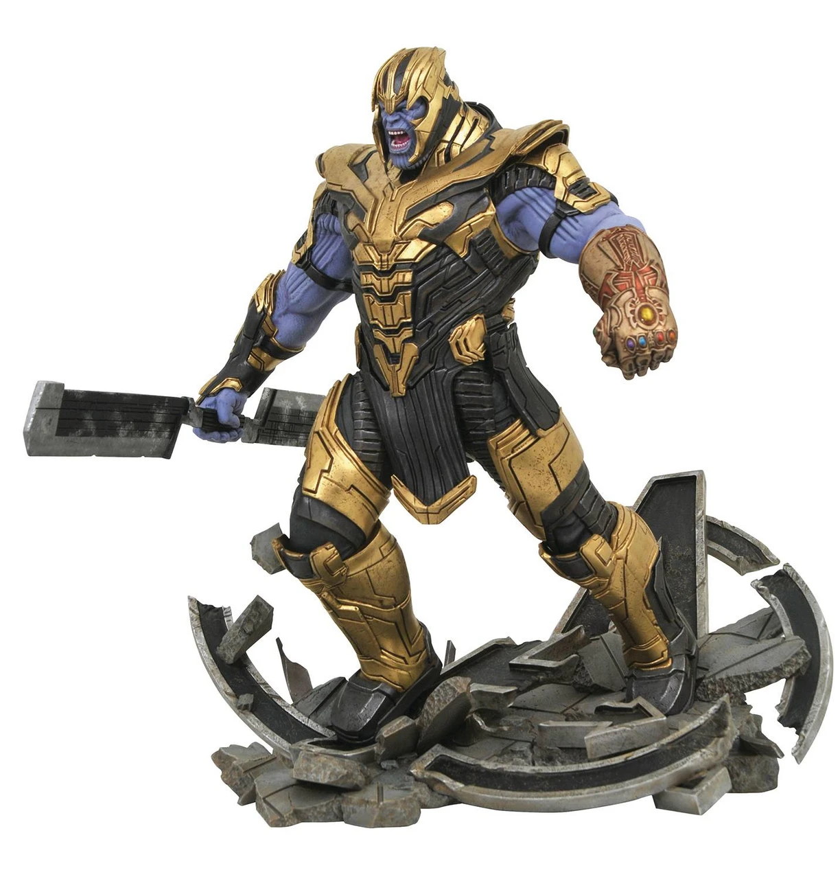 A Diamond Select Toys release! Premier heroes deserve Premier Collection Statues! Each of these approximately 12-inch scale statues depicts the character as they appear in Avengers: Endgame. Limited to only 1,000 pieces each, each sculpture comes packaged in a hand-numbered, full-color box with a certificate of authenticity. Thanos is approx 16in tall!
