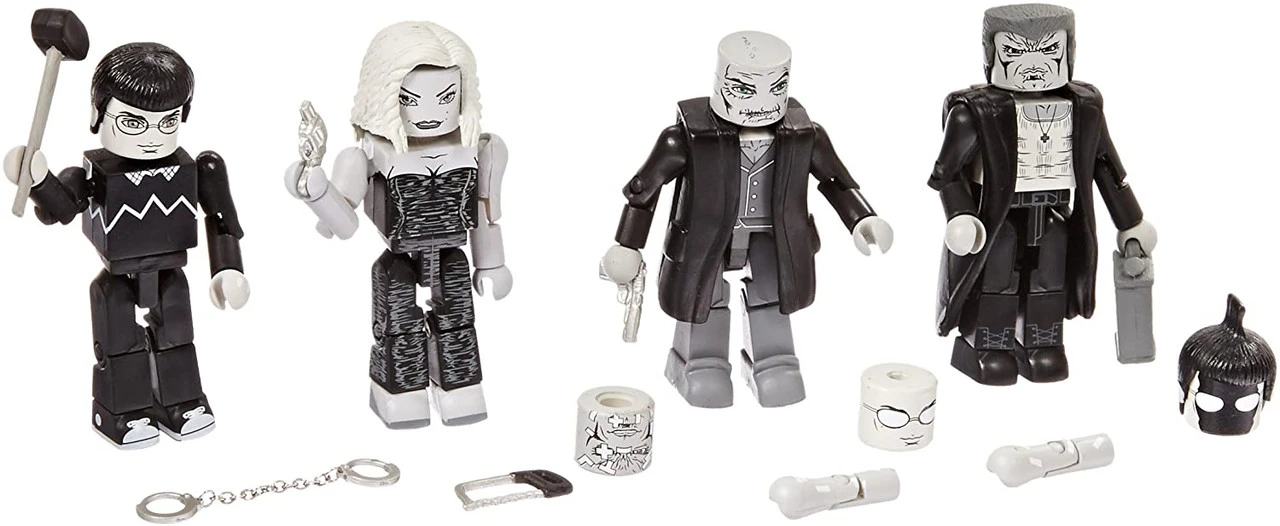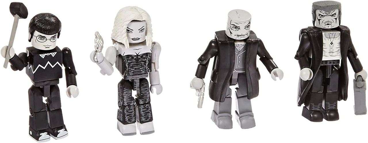 A Diamond Select Toys release! They killed Goldie. And now they’re goanna pay. Marv barrels his way into the Sin City movie line, with a four-pack of Minimarts based entirely on his storyline, “The Hard Goodbye”! With Marv, Wendy, Kevin and Cardinal Roark in one box set, this is guaranteed to be one of the most hard-boiled Minimarts sets ever made! Each Minimarts mini-figure stands 2 Inch tall and features a variety of interchangeable parts, weapons and accessories. Comes packaged on a full-color blister card.
