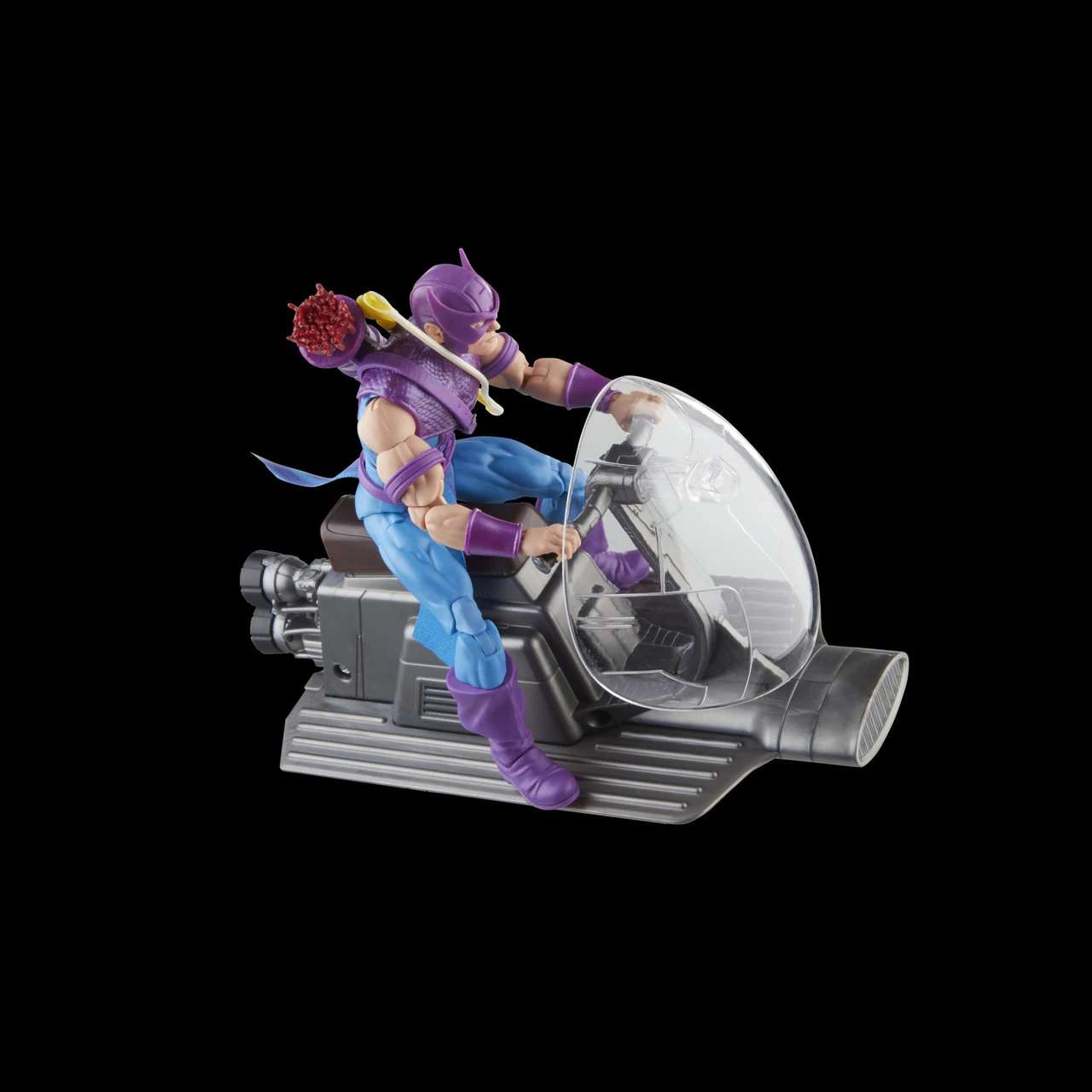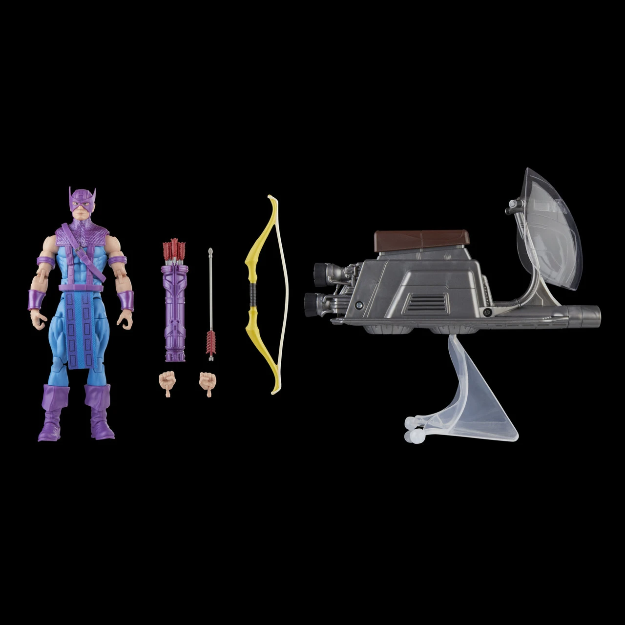 From Hasbro Toy Group. Bring the excitement and wonder of the Marvel Universe to your collection with Hawkeye from the Hasbro Marvel Legends Series! Ex-circus performer Clint Barton renounced a life of crime to join the Avengers as Hawkeye. Using his archery skills atop his Sky-Cycle he leads the fight against the foes no single hero could withstand. This collectible 6-inch -scale Marvel Legends Avengers 60th Anniversary action figure is detailed to look like Hawkeye character from Marvel Comics, featuring premium detail and multiple points of articulation. Comes with comics-inspired Sky-Cycle vehicle that the figure can sit on and 6 accessories.