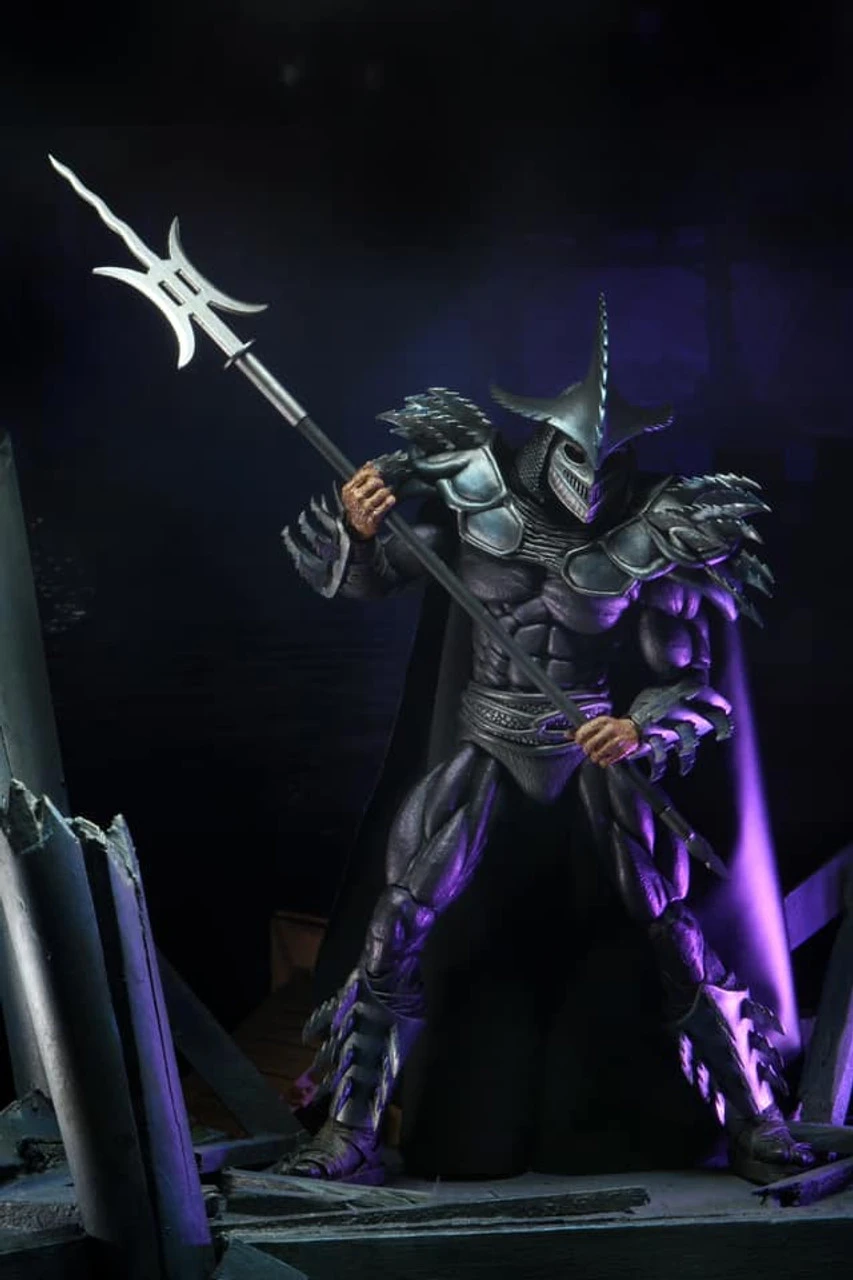 The Shredder lives! After suffering defeat at the hands of the turtles, the leader of the Foot Clan plots his revenge. Desperate to vanquish his foes, Shredder consumes the last bit of mutagen to transform himself into the hulking Super Shredder. Inspired by the classic mail-away figure from 1991, Super Shredder stands over 8″ tall and is painted in an all-new dark deco scheme. He comes with a brand-new fabric cape, interchangeable hands, a bishamon yari, and a TGRI canister. Comes in special metallic finish window box packagingTeenage Mutant Ninja Turtles (1991 Movie) – 7” Scale Action Figure – Stealth Super Shredder