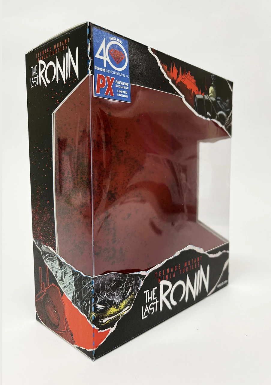 From Playmates. A PREVIEWS Exclusive! Taken right from the hit comic book, this Last Ronin action figure has it all! This meticulously detailed, authentically decorated, and highly poseable figure stands 4.5″ tall and features 14 points of articulation to recreate your favorite scenes. Don’s bo staff, Mikey’s nunchaku, Raph’s twin sai, and both of Leo’s katanas, one with a broken blade, are included as accessories, along with a grappling hook and rope that fasten to his accessory belt. The PREVIEWS Exclusive Last Ronin figure comes packed in a highly collectible Last Ronin branded window box package that includes an overview of his mission.